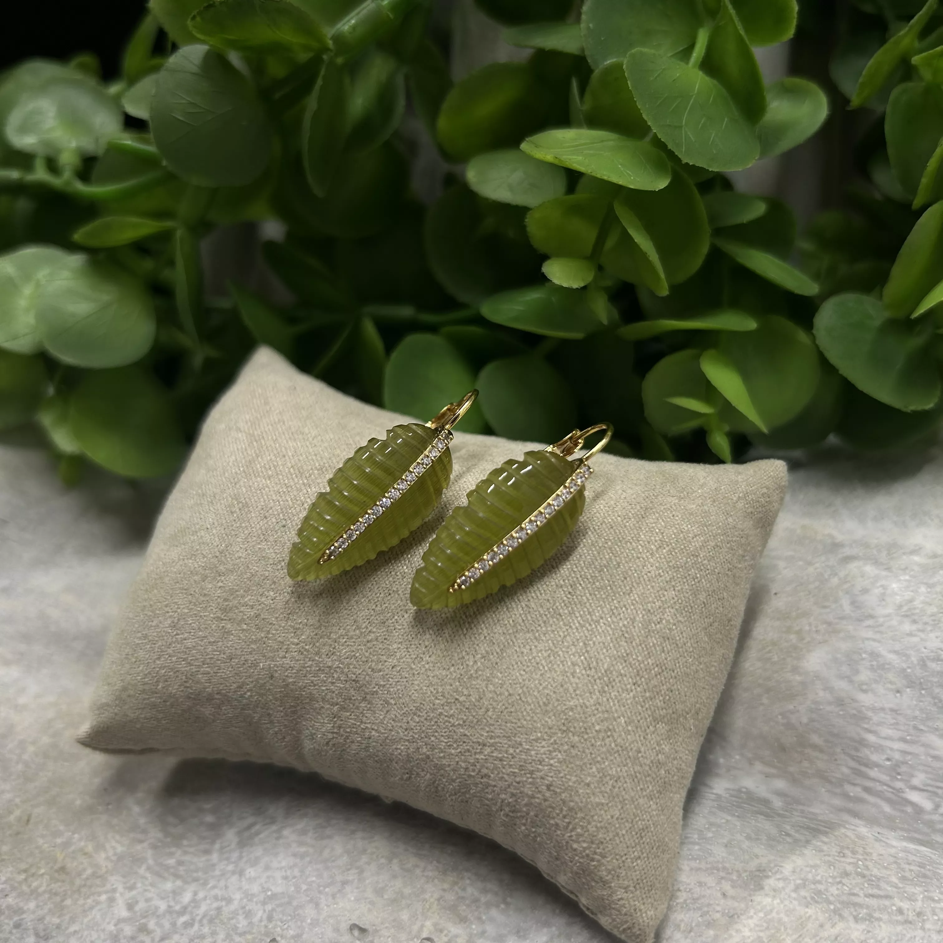 Green glass and zircon earrings